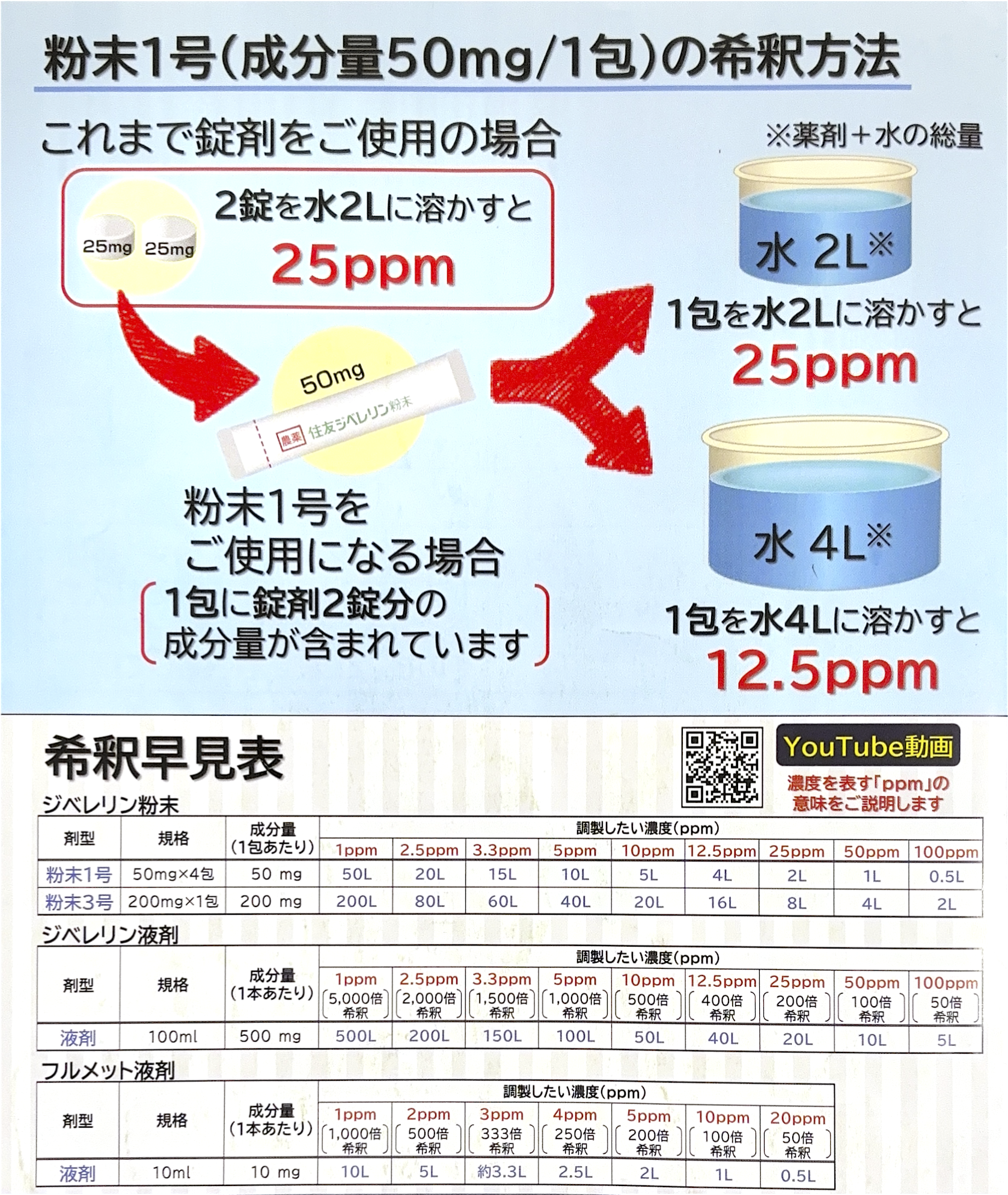 希釈目安(粉末1号)